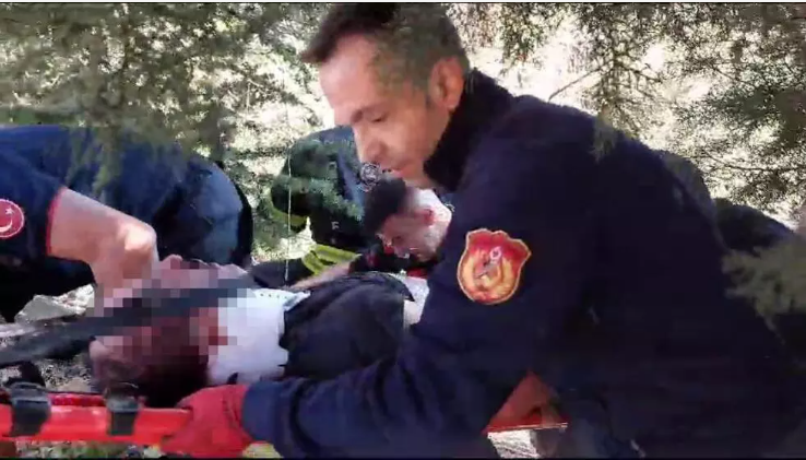 Jandarma, 70 metrelik uçurumun dibinde Ertuğrul P.’yi ağır yaralı buldu. İtfaiye ve jandarmanın çalışmasıyla Ertuğrul P. bulunduğu yerden çıkarıldı.