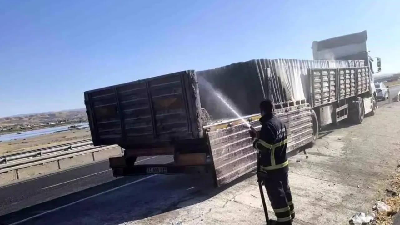 Batman-Diyarbakır yolu girişinde seyir halindeki bir tırın dorsesinde yangın çıktı. Sürücünün dumanı fark ederek aracı yol kenarına çekmesi sayesinde alevler büyümeden kontrol altına alındı.