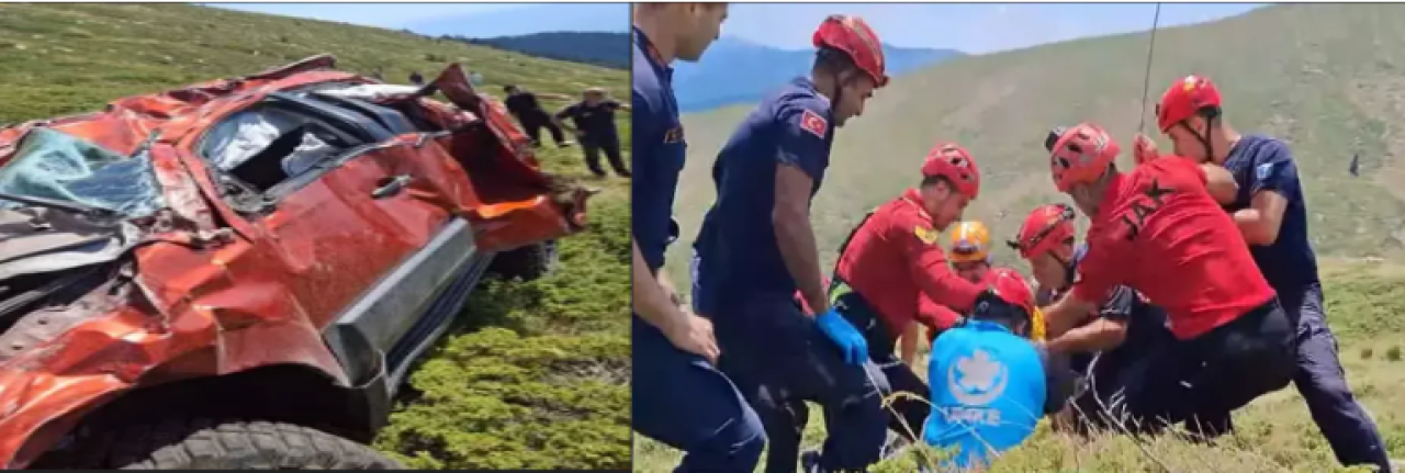 Bursa'nın İnegöl ilçesinde off-road aracı, 100 metrelik uçuruma düştü. Yaralanan 2 kişi Sikorsky helikopter ile alınıp hastaneye götürüldü.