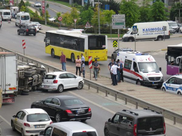 Otomobil bariyerlere çarparken, kamyonet devrildi. Kazayı gören diğer sürücüler ambulans ve polis ekiplerine haber verdi. İhbar üzerine olay yerine gelen polis ekipleri başka bir kazanın yaşanmaması için dubalarla güvenlik önlemi aldı. Kazada hafif şekilde yaralanan sürücüler ambulansla hastaneye kaldırılırken hayati tehlikelerinin olmadı öğrenildi.