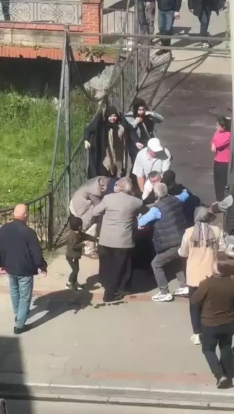 Bazı kişiler kadınları kollarından tutarak uzaklaştırmaya çalışırken, diğerleri ise çocukları güvenli bir alana almayı tercih etti.