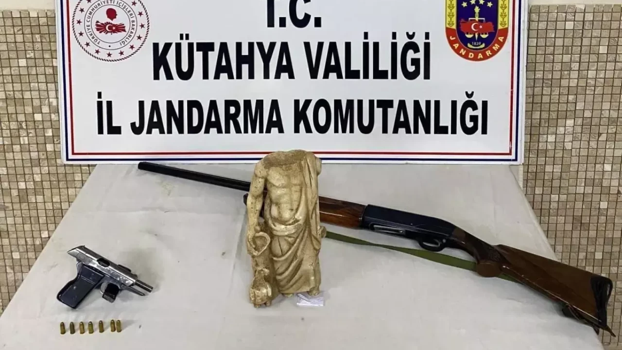Evde yapılan aramalarda tarihi heykelin yanı sıra, bir adet av tüfeği, bir adet ruhsatsız tabanca ve 7 adet tabanca fişeği de ele geçirildi. Ele geçirilen tarihi eser, koruma altına alınarak Kütahya Müze Müdürlüğü’ne teslim edildi.
