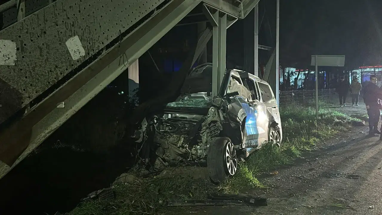 Kontrolden Çıkan Araç Üst Geçide Çarptı