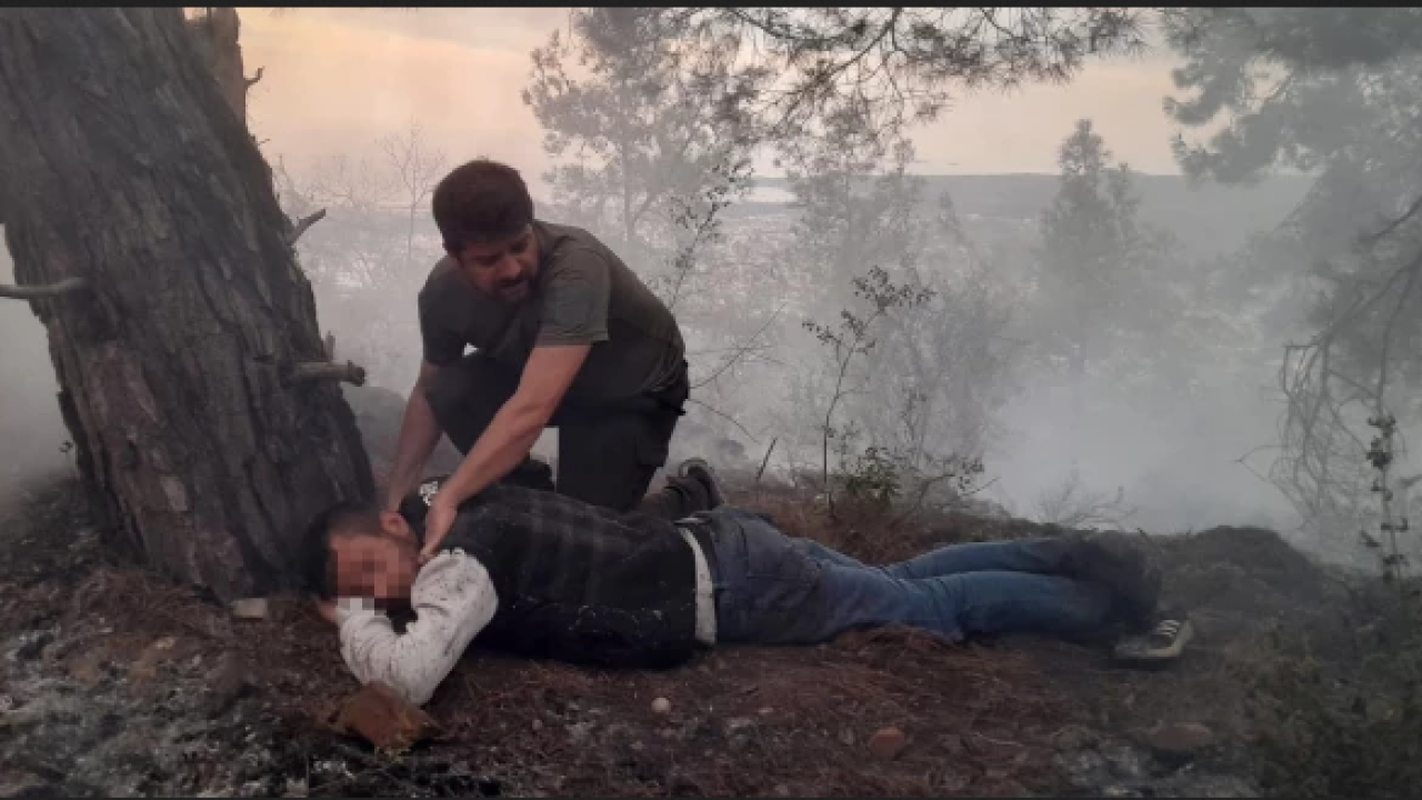 İlk müdahale için yangın noktasına çıkan orman muhafaza görevlisi Mustafa Atcı yanan alanın ortasında yerde yatan kişiyi fark etti. Kendinden geçmiş halde yatan kişiyi bir süre uğraştıktan sonra kaldıran Atcı yanındakilerle birlikte ormandan yola kadar indirdi. Adının F.K. (25) olduğu belirlenen kişi, sağlık ekiplerinin ilk müdahalesi sonrası ambulansla Kemer Devlet Hastanesi’ne götürüldü.