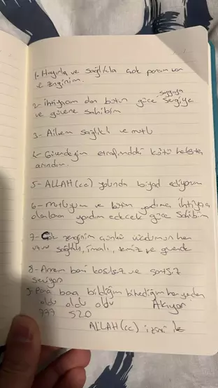 Semanur Arslan'ın el yazısı ile yazdığı notta, "Hayırla ve sağlıkla çok param var ve zenginim. İhtiyacım olan bütün güce, saygıya, sevgiye ve güvene sahibim. Güvendeyim, etrafımdaki kötü herkesten arındım. Annem beni koşulsuz ve sonsuz seviyor. Mutluyum ve bütün yardıma ihtiyacı olanlara yardım edecek güce sahibim. Çok zenginim; çünkü vücudumun her uzvu sağlıklı, temiz ve güvende" ifadeleri yer aldı. Elif Karaca, kızı Semanur’un hayat dolu olduğunu anlatarak, "Bana 'Sana çok güzel bir hayat kuracağım. Sana çok güzel bir gelecek vereceğim' derdi. Böyleydi benim kızım. Notlarda çok güzel açıklamış, çok güzel yazmış. Hayallerini anlatmış. Ne olduğunu bilmiyorum. Sadece bildiğim tek şey var, ben ölüyorum. Ben kızımı istiyorum. 8 yıldır profesyonel olarak binicilik eğitmeniydi. 2 defa attan düştü, kaza geçirdi yaralandı. Hep ondan korkuyordum. ‘Anneciğim ne olursun bir gün attan düşersin, bir şey olur’ diyordum. Keşke attan düşseydi. Son geldiğinde hızlıca çıktılar. Bana ‘Anneciğim yarın döneceğim’ dedi. Ama dönemedi. Benim kızımın dönmesine izin vermediler. Benim kızım mümkün değil intihar etmez. Hayat dolu bir çocuktu. Benim kızım asla intihar etmedi" dedi