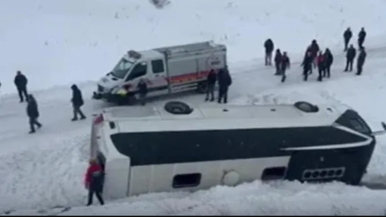 Sivas'ta, cenazeden dönenleri taşıyan Kadıköy Belediyesi'ne ait yolcu otobüsünün, kar yağışı nedeniyle kaygan zeminde, şarampole devrildiği kazada, 14 kişi yaralandı.