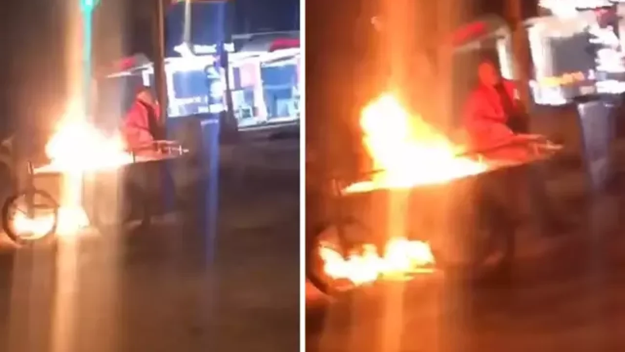 Olay, İnegöl’ün Orhaniye Mahallesi Ankara Caddesi üzerinde gece saat 04.00 sıralarında meydana geldi. İddiaya göre, alkollü olduğu belirtilen bir şahıs, ekmek teknesi olan seyyar satış aracını ateşe verdi. Alevler kısa sürede aracı sardı, ancak şahıs hiçbir müdahalede bulunmadan aracın başında oturmaya devam etti.