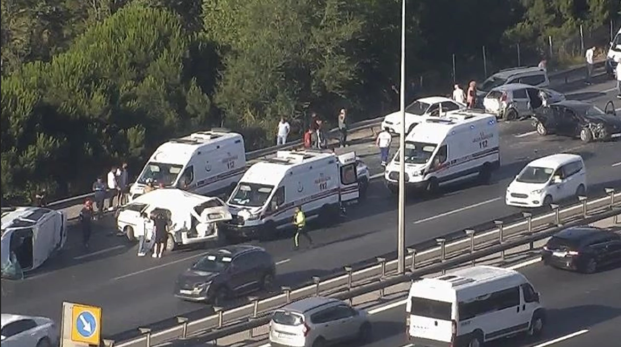 TEM Otoyolu Bahçeşehir mevkisinde 15 aracın karıştığı zincirleme kaza meydana geldi.