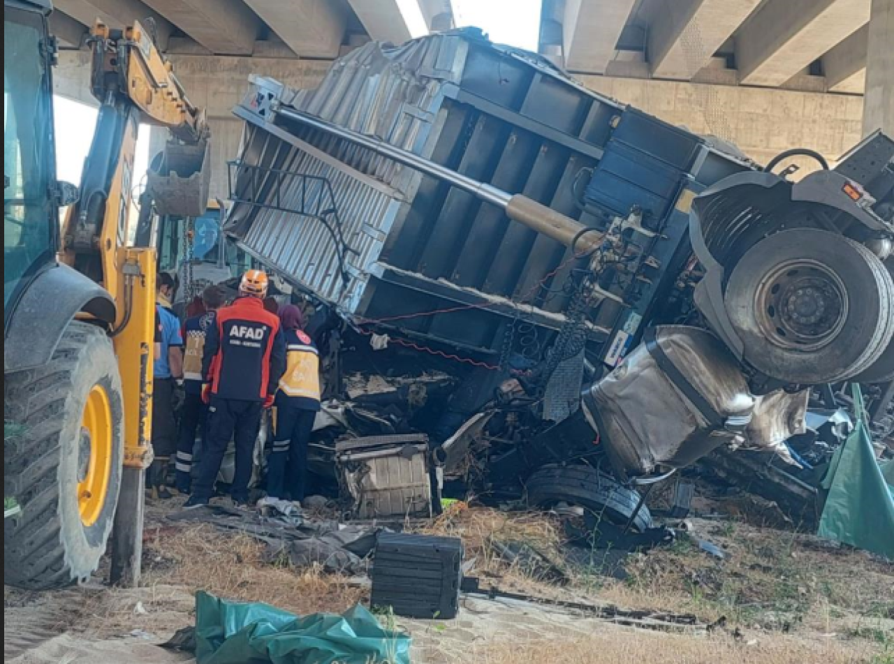 Şanlıurfa'nın Birecik ilçesinde meydana gelen kazada, viyadükten düşen tırda sıkışan 2 kişi hayatını kaybetti.
