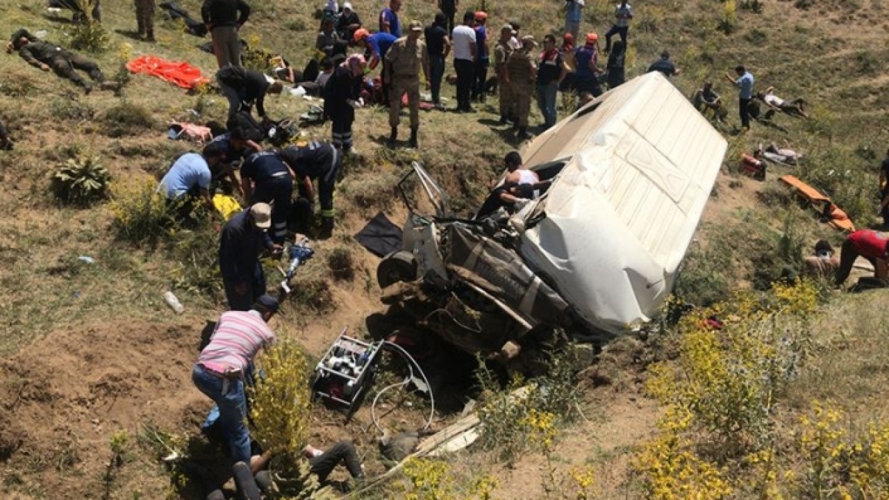 Taklalar atarak yaklaşık 35 metrelik şarampole yuvarlanan minibüsteki kaçaklardan bazıları dışarı fırladı. Can pazarının yaşandığı kazanın haber alınması üzerine bölgeye çok sayıda ambulans, jandarma AFAD, UMKE ve itfaiye ekipleri sevk edildi. Sağlık ekiplerinin yaptığı kontrollerde, aralarında kadın ve çocukların da bulunduğu 14 kişinin yaşamını yitirdiği, 53 kişinin de yaralandığı belirlendi.