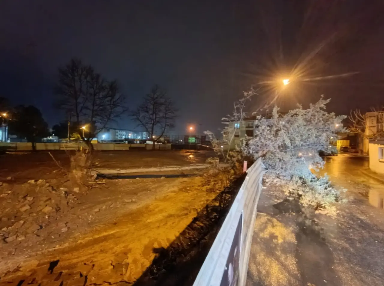 Bursa’nın İnegöl ilçesi Fatih Mahallesi Emniyet Sokak’ta saat 22.30 sıralarında inşaat alanındaki ağaç, bölgede etkili olan yağış ve kuvvetli rüzgarın etkisiyle kökünden ayrılarak sokağa devrildi.