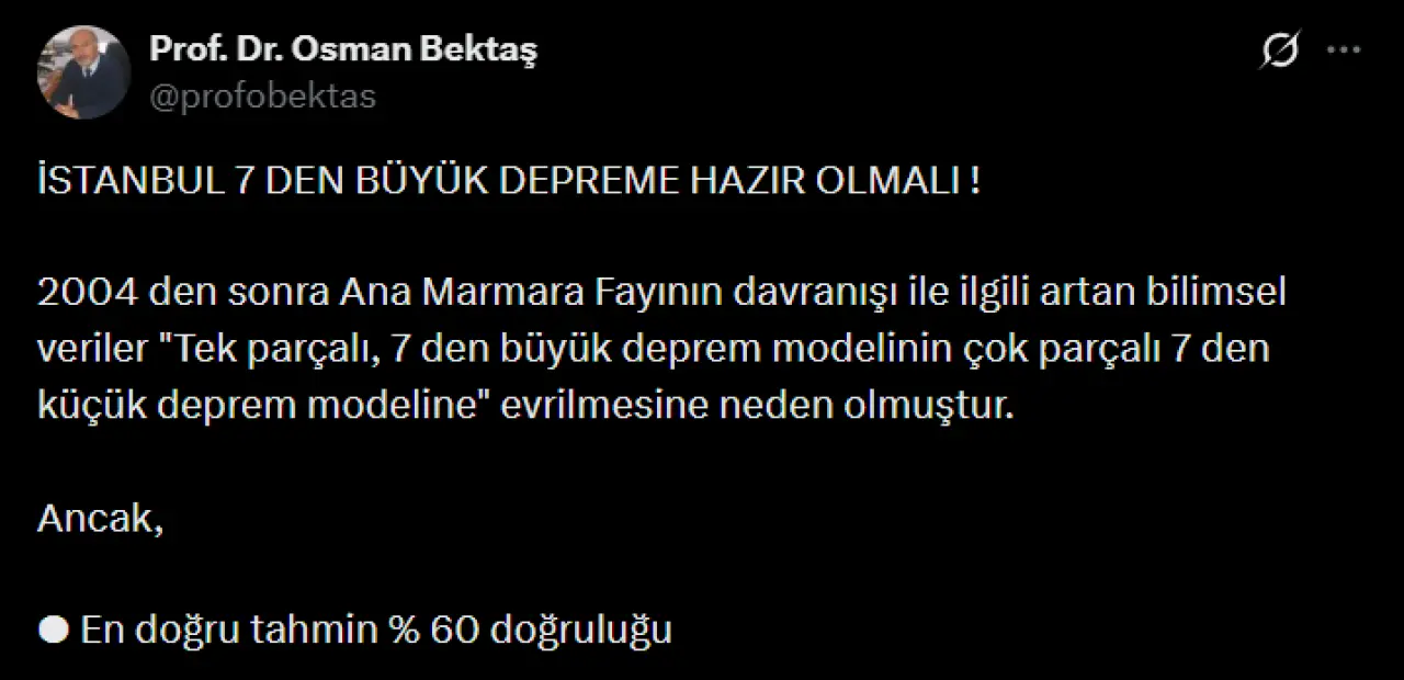 Paylaşımında net bir uyarıda bulunan Bektaş, İstanbul’un farklı senaryolara karşı hazırlıklı olması gerektiğini belirterek,