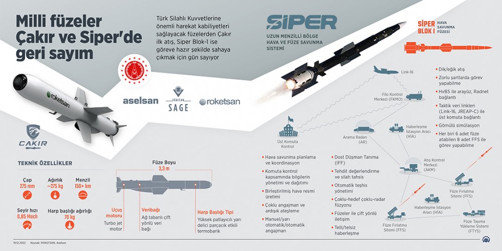 Türk Silahlı Kuvvetlerine önemli harekat kabiliyetleri sağlayacak füzelerden Çakır ilk atış, Siper Blok-1 ise göreve hazır şekilde sahaya çıkmak için gün sayıyor.