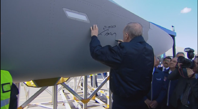 Cumhurbaşkanı Erdoğan, Milli Muharip Uçak KAAN'ın gövdesine 1 Mayıs 2023 tarihini yazarak imza atmıştı. Daha sonra KAAN'ın kokpitinde uçak hakkında bilgi alan Erdoğan, gazetecilere de el sallamıştı.