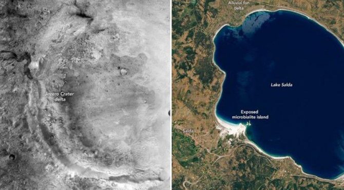 NASA, Kızıl Gezegen lakaplı Mars üzerindeki Jezero Krateri'ne çok benzeyen bir oluşumun Dünya üzerinde de olduğunu duyurdu. NASA, Jezero Krateri'nin benzerinin Türkiye'nin en önemli doğa harikalarından Salda Gölü'nde olduğunu açıkladı.