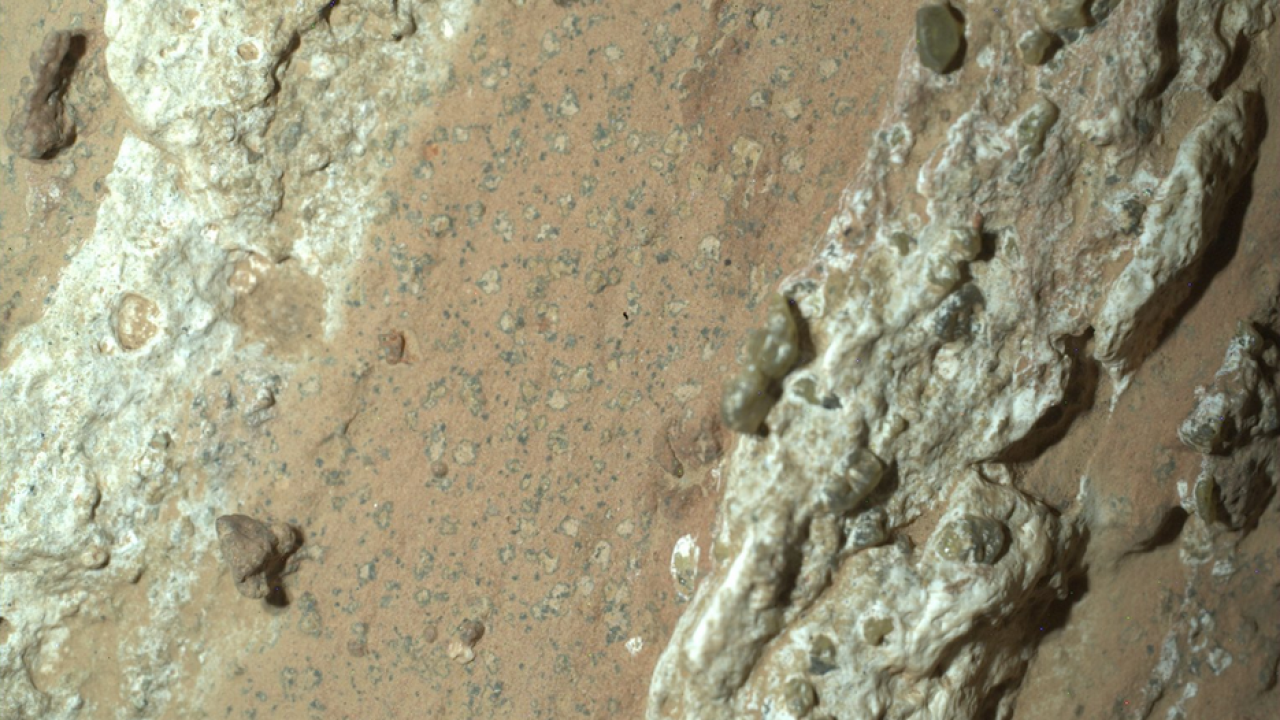 Söz konusu kırmızı bölgelere daha yakından bakıldığında, leopar desenine benzeyen siyah maddelerle çevrili çok sayıda düzensiz şekilli, milimetrik boyutta kirli beyaz lekeler de tespit edildi.Perseverance'ın "X-ışını Litokimyası için Gezegensel Enstrüman (PIXL)" cihazı, bu siyah halelerin hem demir hem de fosfat içerdiğini belirledi.