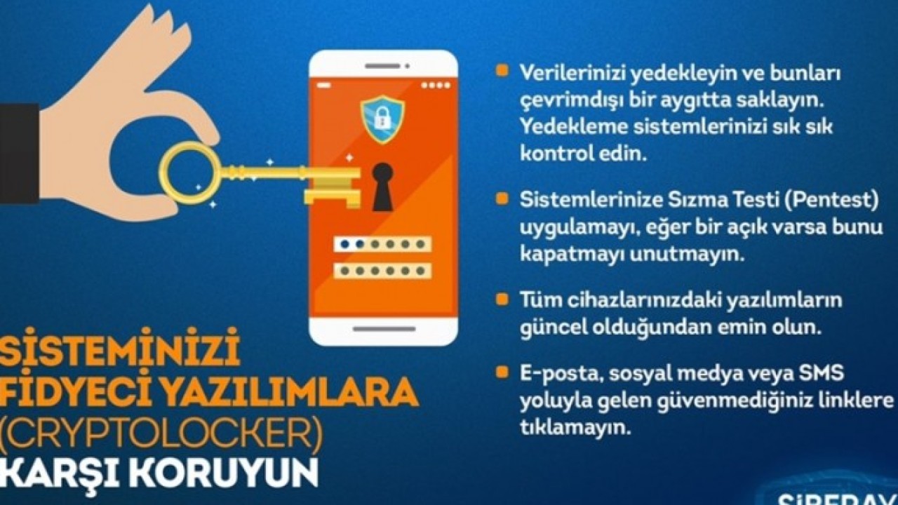 "Fidyeci yazılımların genellikle e-posta ile bulaşması sistemlerde e-posta güvenliği sağlanması ve olası tehditleri önlemek için belirli kurallar ve filtreler koymayı mecbur kılmakta, üzerinde çalışmalar yapılan veriler yedeklenmeli. Örneğin harici hard disk, USB, alınan yedekler sıklıkla kontrol edilmeli ve güncelleştirilmeli. Sunucu sistemlerine sıklıkla güvenlik duvarı güncelleştirmeleri ve sızma testleri yapılmalı. Unutulmamalı ki kötü amaçlı yazılımlar genellikle güncelleme eksikliğinden ve sistem üzerinde bulunan açıklardan bulaşmaktadır.