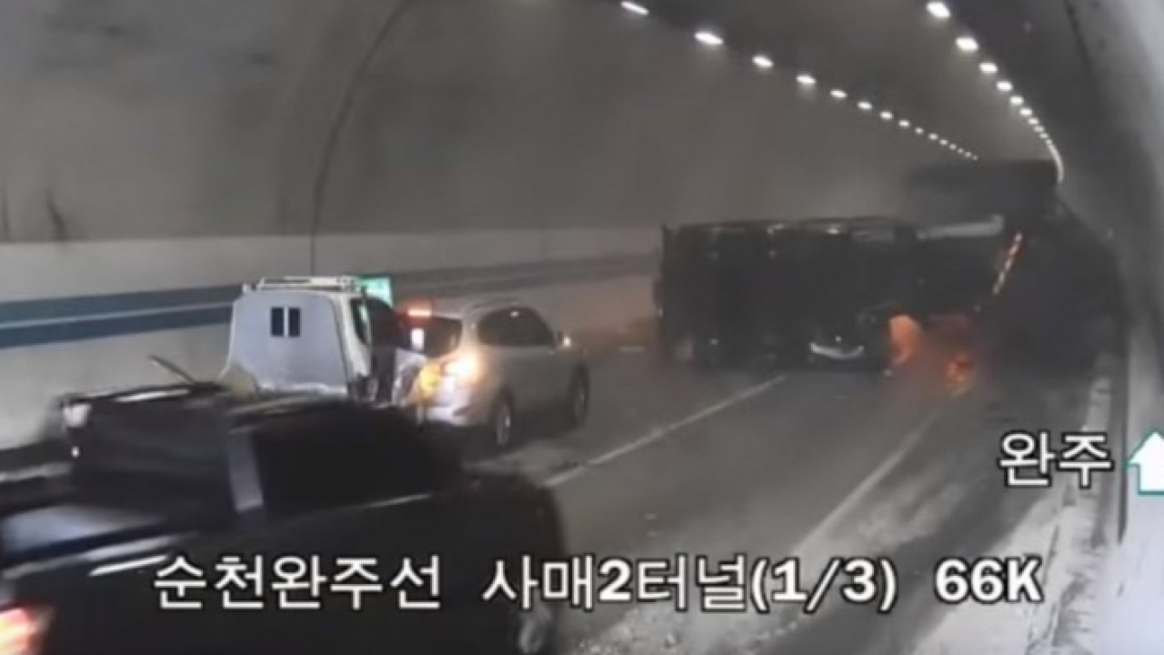 Güney Kore'de Suncheon ve Wanju'yu bağlantı yolunda yer alan bir tünelde aralarında nitrik asit taşıyan bir kamyonun da bulunduğu 30 aracın karıştığı bir zincirleme kaza yaşandı.