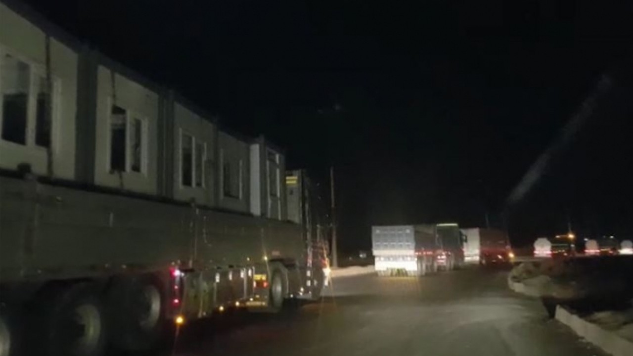 Tırlarda askeri zırhlılar, prefabrik yapılar ve iş makineleri taşındı.
