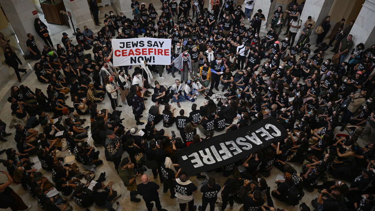 Birçok savaş karşıtı Yahudi grubun da katıldığı eylemde göstericilerin bir kısmı, daha sonra Kongre binasına girerek oturma eylemi yaptı.