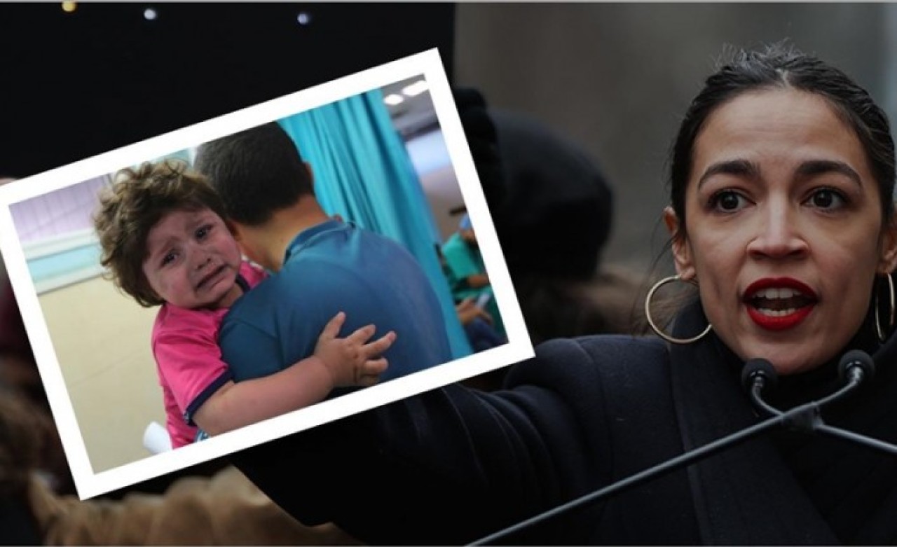 Ocasio-Cortez'in konuşması esnasında yanındaki panoda AA'nın abonelerine Filistin'den geçtiği kare sergilendi. Fotoğrafta, yara almış küçük kız çocuğunun bir klinikte tedavi için bekleme anı yer alıyor.