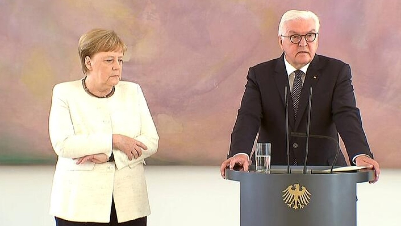 Almanya Başbakanı Angela Merkel bu sabah saatlerinde Cumhurbalkanı Steinmeier'in basın açıklaması yaptığı esnada yeniden titremesi endişe yarattı.