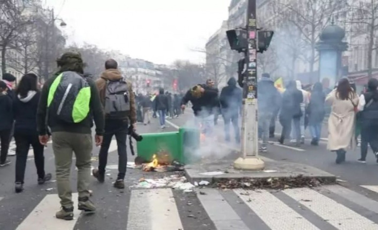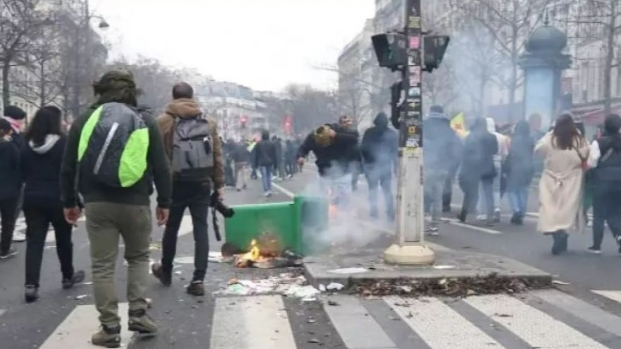 Sosyal medyada, bir grup PKK yandaşının ellerindeki bayrak direkleriyle bir ya da birkaç kişiye saldırdıkları ve taşkınlık yaptıklarına ilişkin görüntüler yer alıyor.