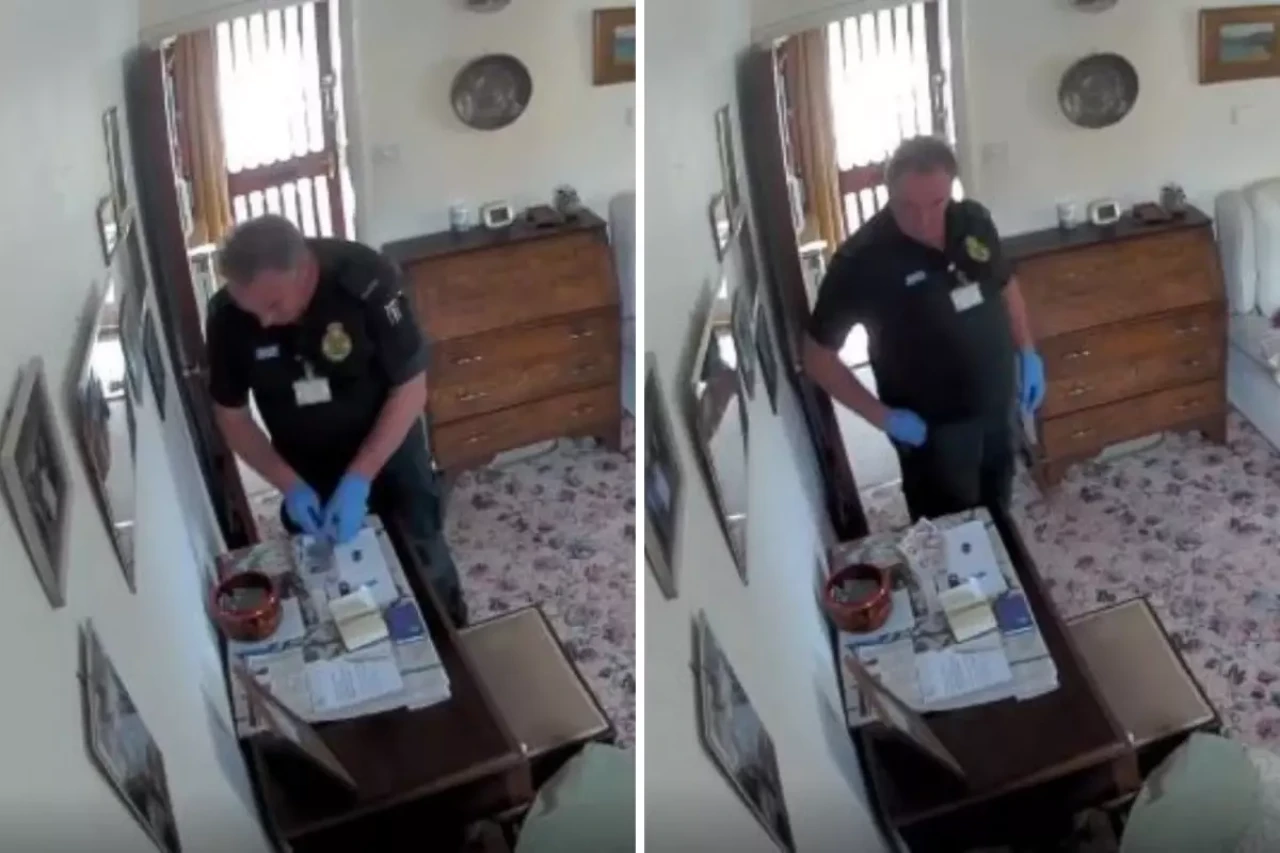 Kadının ölümünden sonra, canlandırma yapılmaması yönündeki belgeyi aradığını iddia eden Titley, yeniden eve girdi. Ancak içeride yaptığı şey, mesleki etikle bağdaşmadığı gibi, insanlık değerlerini de ayaklar altına aldı. Güvenlik kamerasına yansıyan görüntülerde, Titley'nin plastik para kutusunu açtığı, içindeki banknotları saydığı ve tam 60 poundu cebine koyduğu açıkça görülüyor. Etrafta kimsenin olmadığından emin olmak için bakınan Titley, kamerayı fark ettiği anda panikle parayı kutuya geri koydu.