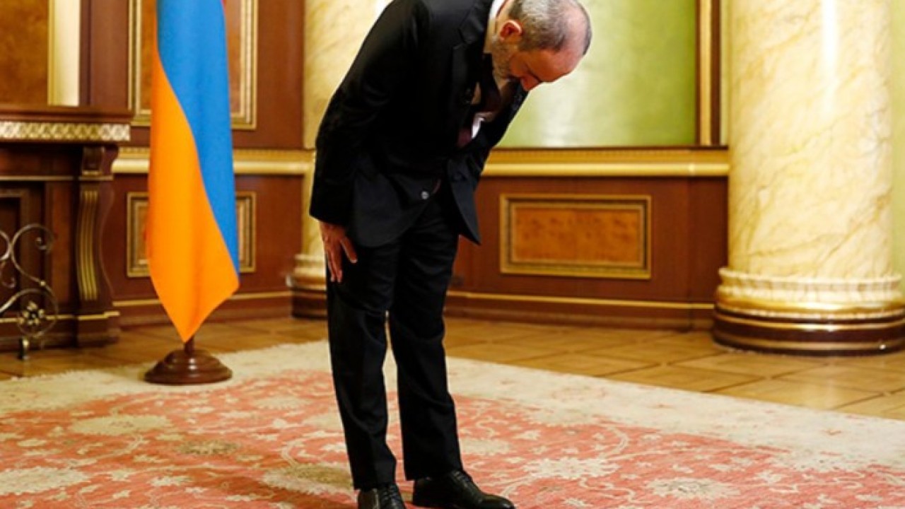 Paşinyan, eğilerek poz verdiği bir fotoğrafını Twitter hesabından "Memleketimiz uğruna savaşan ve canlarını veren şehitlerimizin yasını tutuyorum" notu ile paylaştı.