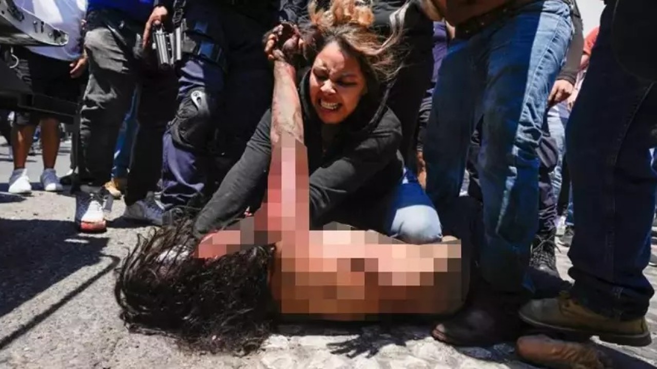 İkisini de arabadan çıkaran kalabalık grup öldüresiye dayat attı. Kız çocuğurur annesini ve kalabalığı polis durduramadı.
