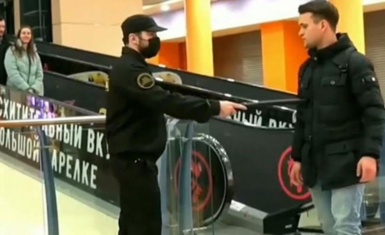 Güvenlik görevlisi, AVM'de maskesiz dolaşanların önünde diğer sosyal medya fenomenini copla dövdü. Onu gören diğer maske takmayanlar ise dayak yememek için panikle maskelerini taktı.