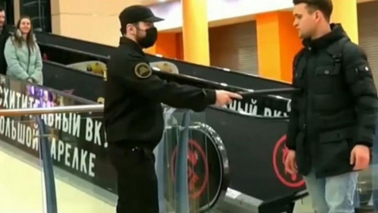 Rusya'nın başkenti Moskova'da bir alışveriş merkezinde koronavirüse karşı korunmak amacıyla maske takmayanlara ders niteliğinde şaka yapıldı.