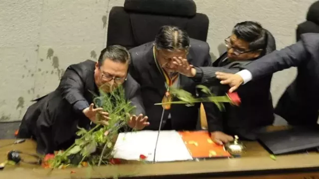 Bolivya’da Devlet Başkanı Yardımcısı David Choquehuanca, meclis kürsüsünde konuşma yaparken, eski Devlet Başkanı Evo Morales yanlısı milletvekillerinin domatesli protestosuna maruz kaldı.