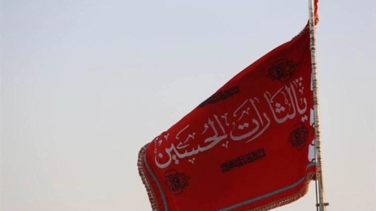 Kırımız renkli bayrağın üzerinde, Arapça "Ya el saratel Huseyn!" (Ey Hüseyin’in intikamı!) yazıyor.
