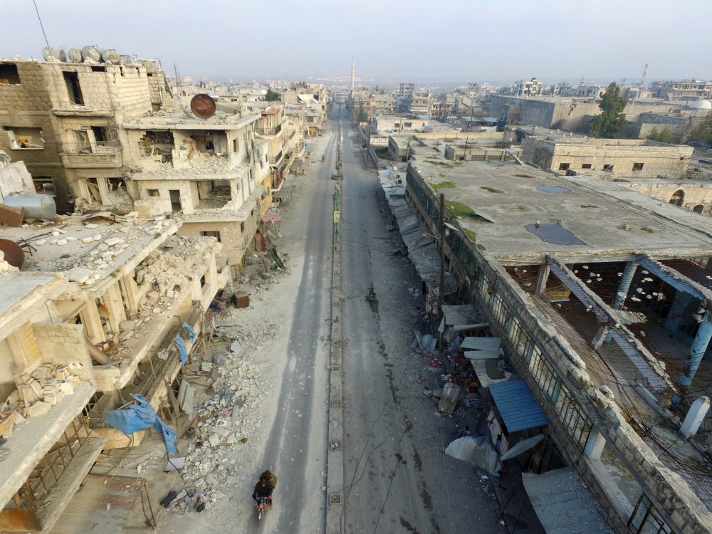 Esad rejimi ve destekçilerinin gece geç saatlerde ele geçirdiği Maarratünnuman ilçe merkezini, Rusya destekli rejim güçlerinin girmesinden hemen önce havadan drone ile görüntüledi.