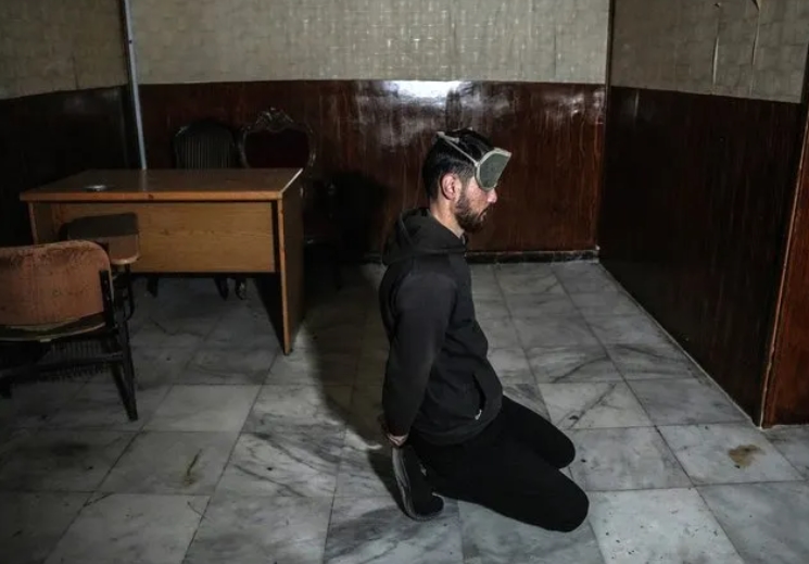 İşkence odalarına götürülen mahkumların elleri ve ayakları zincirleniyor, gözlerine bantlar takılıyordu. Demir çubuklarla dövülme, sürekli psikolojik şiddet ve işkenceye maruz kalma, mahkumların günlük rutinlerinden biri haline gelmişti. Khatip, “Kapı önünde duran göz bantları kovası, gördüğümüz korkunç manzaranın bir simgesiydi” dedi.