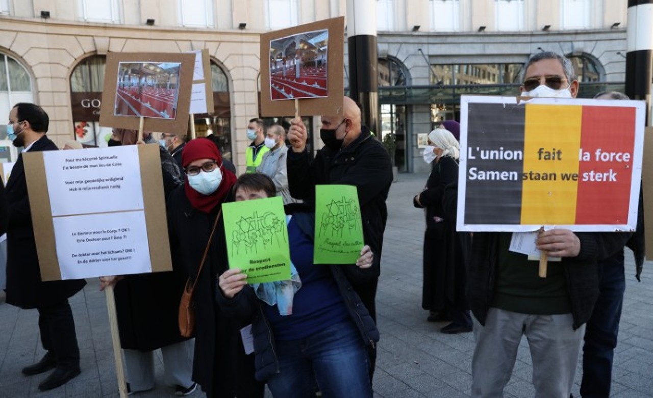 Merkezi tren istasyonu önünde toplanan grup adına yapılan açıklamada, Belçika hükümetinin, Kovid-19 tedbirleri kapsamında ibadethanelerde 15 kişi sınırlaması kararını yeniden değerlendirmesi gerektiğini belirterek, "Bu zor günlerde anlam ve maneviyat ihtiyacı her zamankinden daha fazla hissediliyor." ifadesi kullanıldı.
