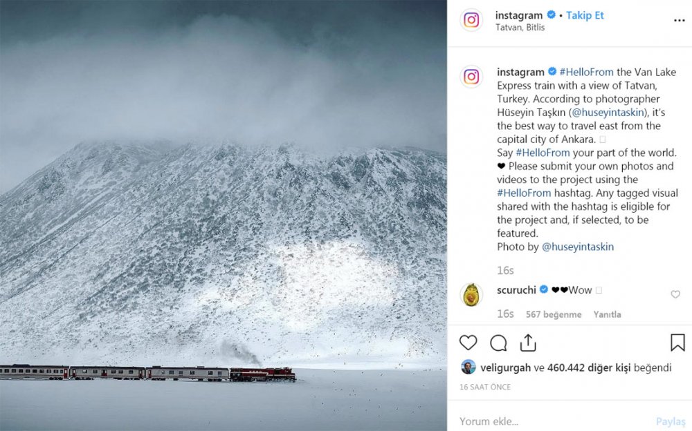 Instagram’ın resmi hesabından fotoğrafla yapılan paylaşımda, Taşkın’a göre başkent Ankara’dan Türkiye’nin doğusuna seyahat etmenin en iyi yolunun Van Gölü Ekspresi olduğuna yer verildi.