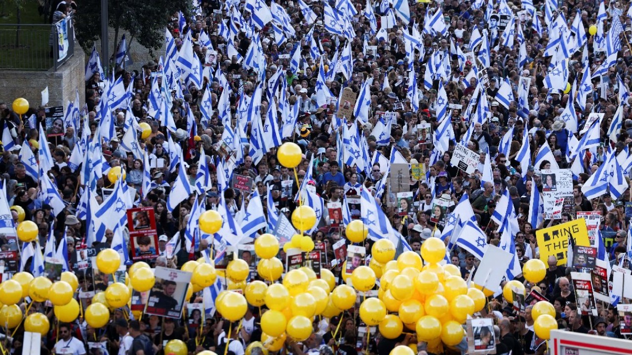 Gazze’deki esirlerin yakınları ve onlara destek veren çok sayda İsrailli, Kudüs yakınlarındaki Ein Hemed bölgesinden İsrail Başbakanlığı Ofisi’ne doğru yürüdü.