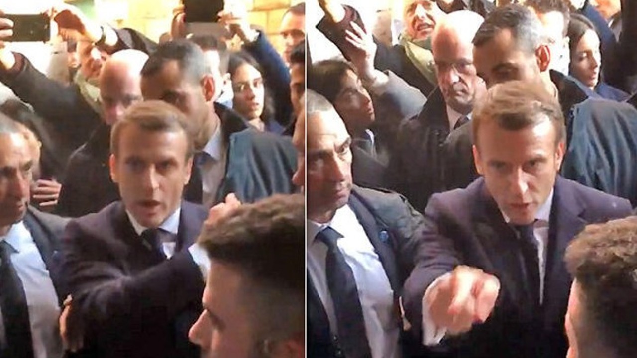 Herkesin kuralları bildiğini söyleyen Macron, İsrailli polise hitaben, "Önümde yaptığın şey hoşuma gitmedi. Dışarı çık" ifadelerini kullanıyor.