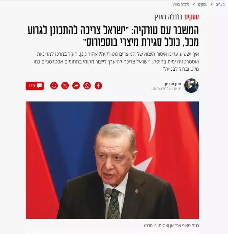 Gazete ayrıca Türkiye'nin boğazları kapatması durumunda İsrail'in Rusya, Avrupa hatta Kafkaslara bile ulaşımının kesilebileceğini, bunun de ekonomik felakete yol açabileceğini yazdı.