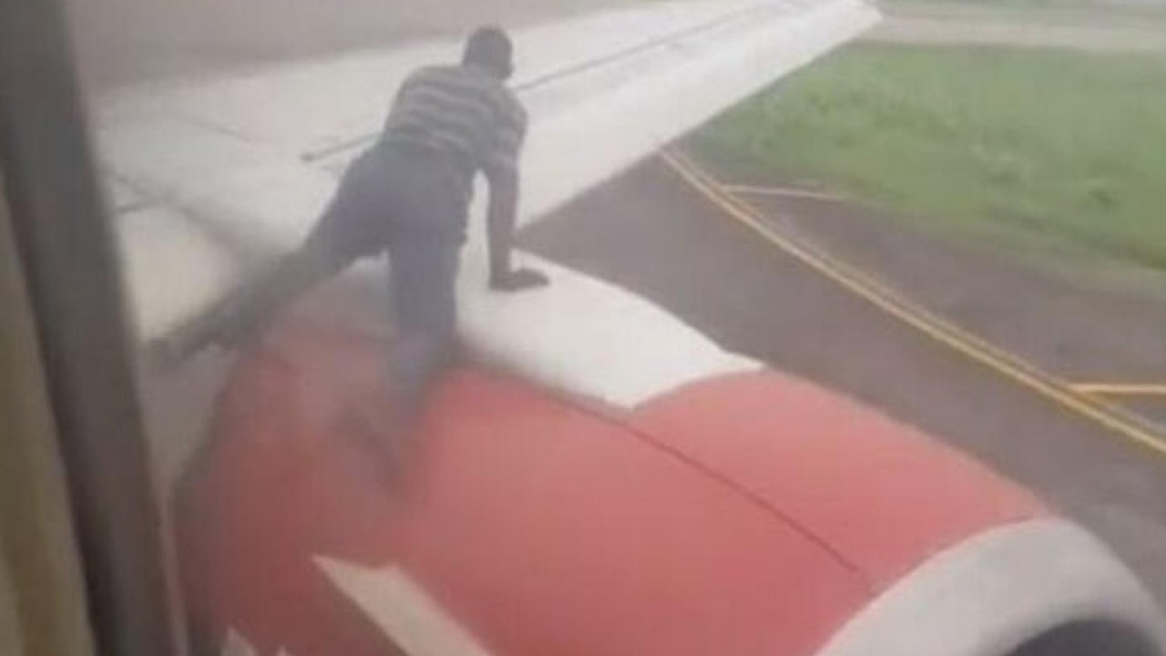 Nijerya Haber Ajansı NAN'a göre olay Cuma günü meydana geldi. Kalkış için onay alan Azman Hava Yolları'nın Boeing 737 tipi uçağı pistin açılmasını beklerken yolcular bir kişinin motorun üzerinden kanada çıktığını gördü.