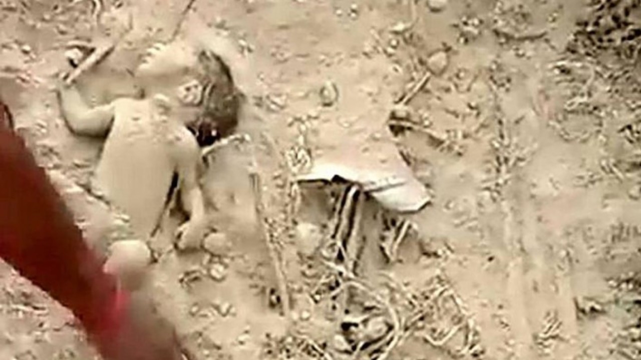 Toprağın altından çıkarılan bebek, bir süre hareketsiz kalsa da daha sonra kolunu ve bacağını oynattı.