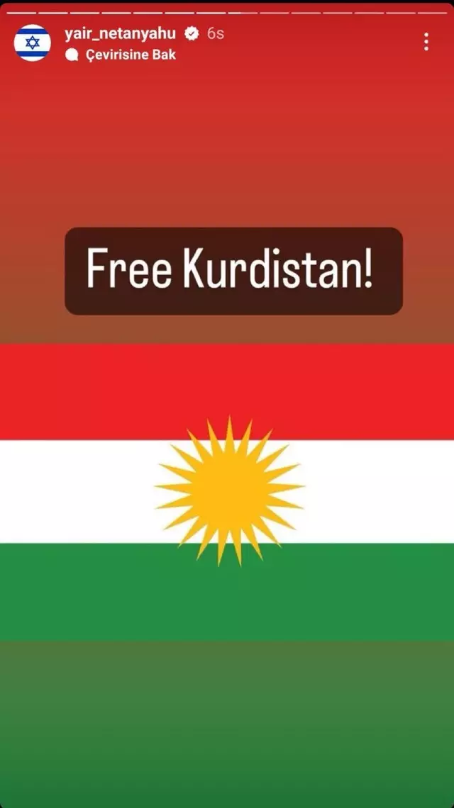Yair Netanhahu'nun 'Free Kurdistan' paylaşımı Türkiye'de gündem oldu.
