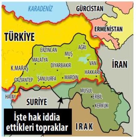 Papa'nın figürünün yer aldığı pulun arka fonunda görülen haritaya, Türkiye’nin birçok doğu ve güneydoğu ili Irak Kürt Bölgesel Yönetimi’ne dahil edilerek sözde ‘Büyük Kürdistan’ propagandası yapıldı.