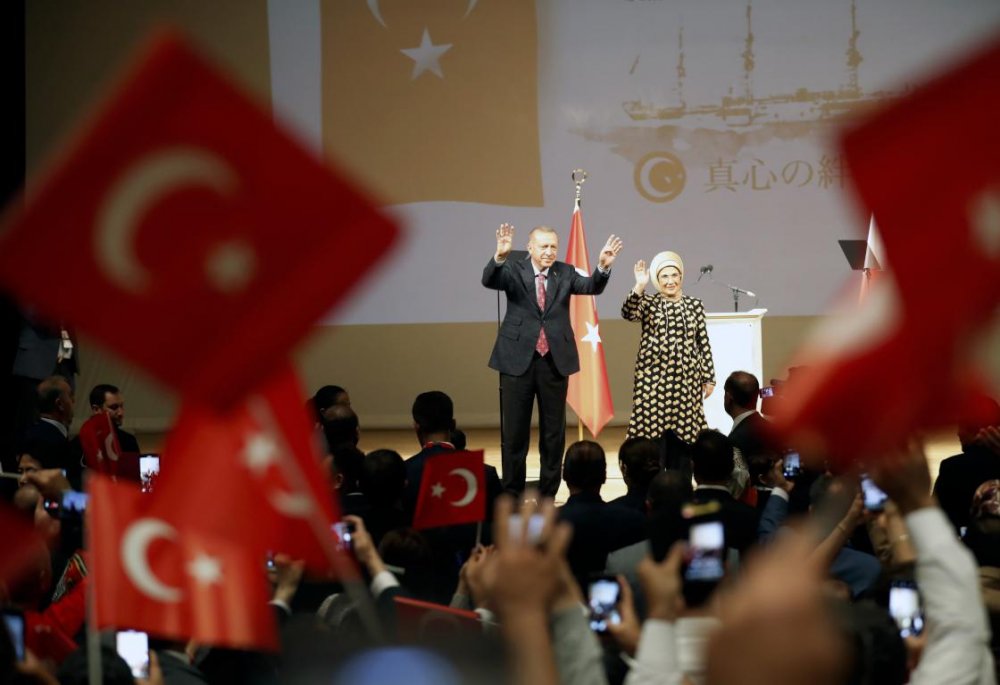 Buluşmaya gelemeyen Japonya'daki Türk vatandaşlarına da selamlarını gönderen Erdoğan, "Sizlere 82 milyon Türkiye Cumhuriyeti vatandaşının muhabbetini getirdim. Sizlere ailelerinizin, yakınlarınızın, hemşehrilerinizin kucak dolusu selamını, muhabbetini getirdim." ifadesini kullandı.