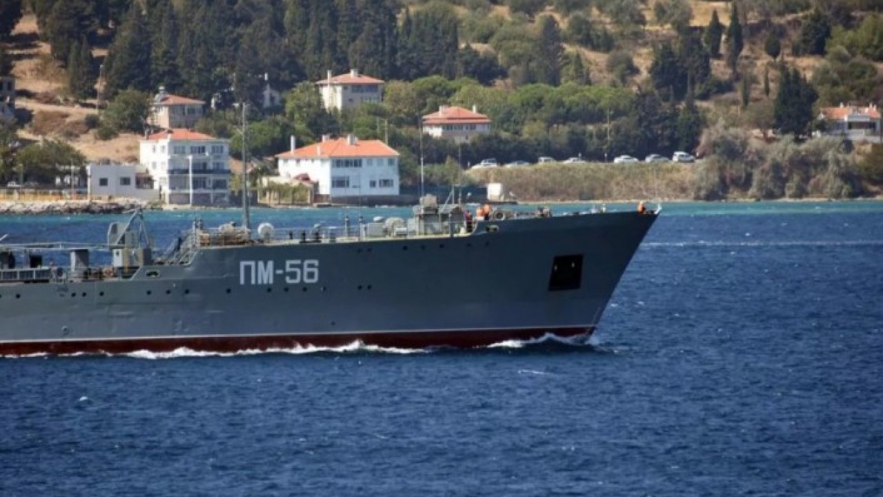 Ege Denizi'nden saat 11.30'da Çanakkale Boğazı'na giriş yapan, Rus Donanması'nın Karadeniz filosuna bağlı 'PM-56' borda numaralı savaş gemisi, saat 12.30 sıralarında, Çanakkale önlerinde oldu.