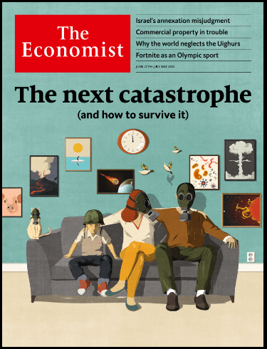 The Economist "Sıradaki Felaket (ve nasıl hayatta kalınır)" başlıklı son kapağının video halini siren sesleri eşliğinde yayınladı.