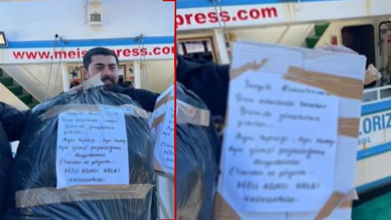 Türkiye’ye en yakın Yunan adalarından Meis Adası’ndan Türkiye’ye gönderilen yardım kolilerinden birinin üzerine yazılan not okuyanları duygulandırdı.