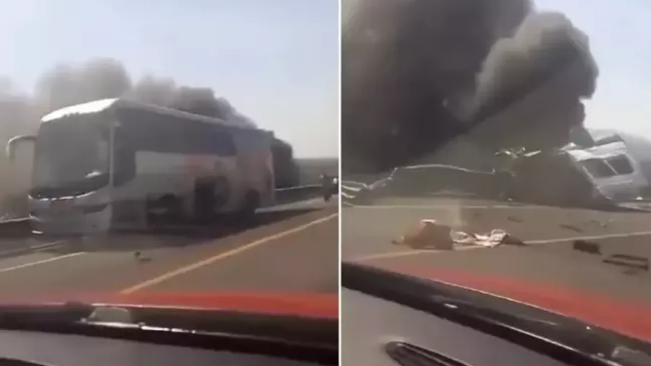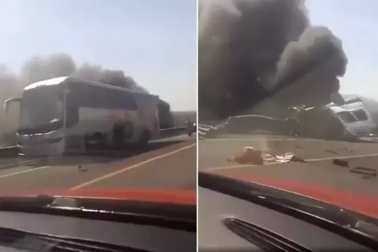Olay anına tanıklık eden bir yerel gazetecinin sosyal medya üzerinden paylaştığı görüntüler, kazanın ne denli yıkıcı olduğunu gözler önüne serdi. Videolarda, uçurumdan yükselen dumanın gökyüzünü kapladığı ve yol kenarındaki bariyerlerin büyük kısmının parçalandığı net şekilde görüldü.
